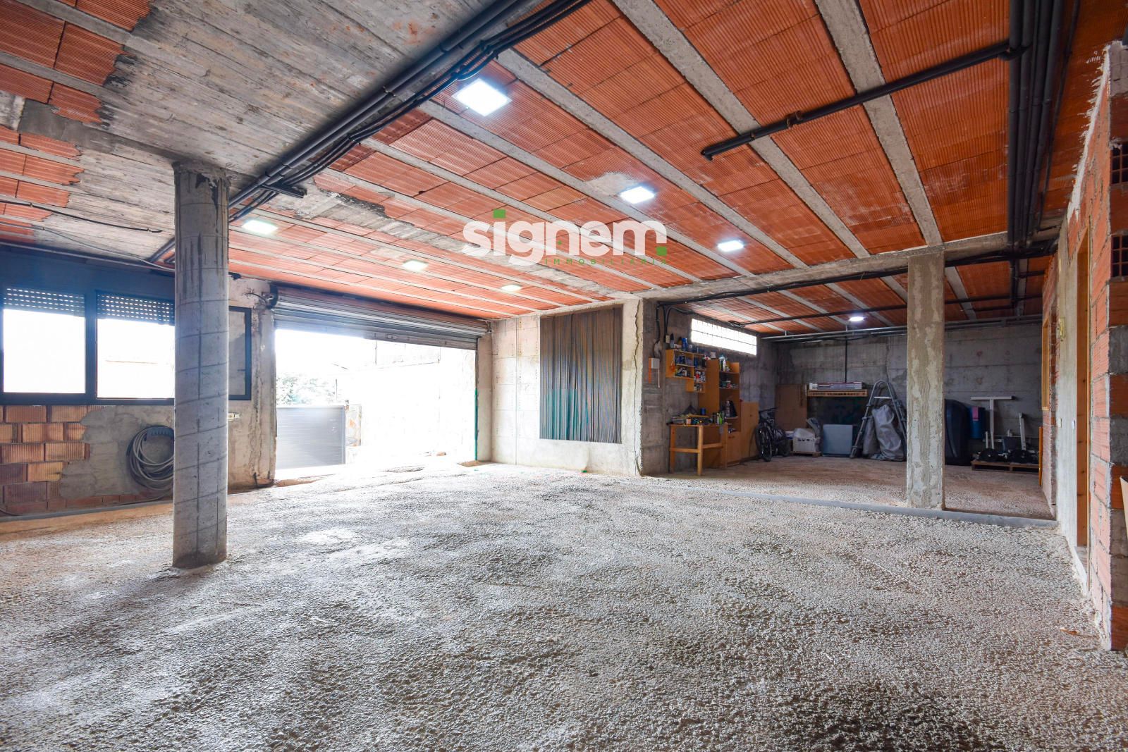 Demi-sous-sol : Grand garage de 74 m² pouvant accueillir trois véhicules. Ce niveau comprend une salle de bain en cours de finition, une salle de musique insonorisée idéale pour les loisirs ou le travail, et de nombreux rangements.